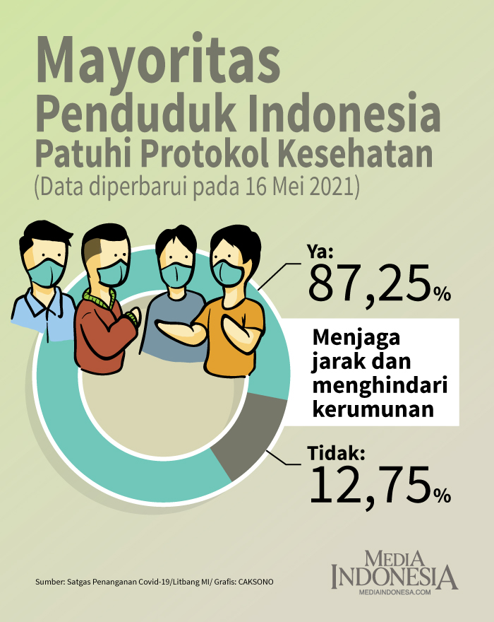 Mayoritas Penduduk Indonesia Patuhi Protokol Kesehatan